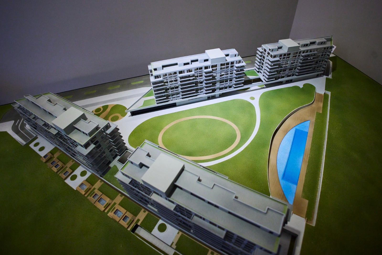 Un proyecto de cuatro edificios, PB + 8 pisos, con unidades de categoría de 2, 3 y 4 ambientes.